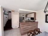 La casa cuenta con un acogedor living comedor equipado con un comedor para seis personas, un sillón y dos puff para relajarse. La cocina está equipada con microondas, cocina a gas, refrigerador, hervidor y tostador, ideal para preparar deliciosos platos.
