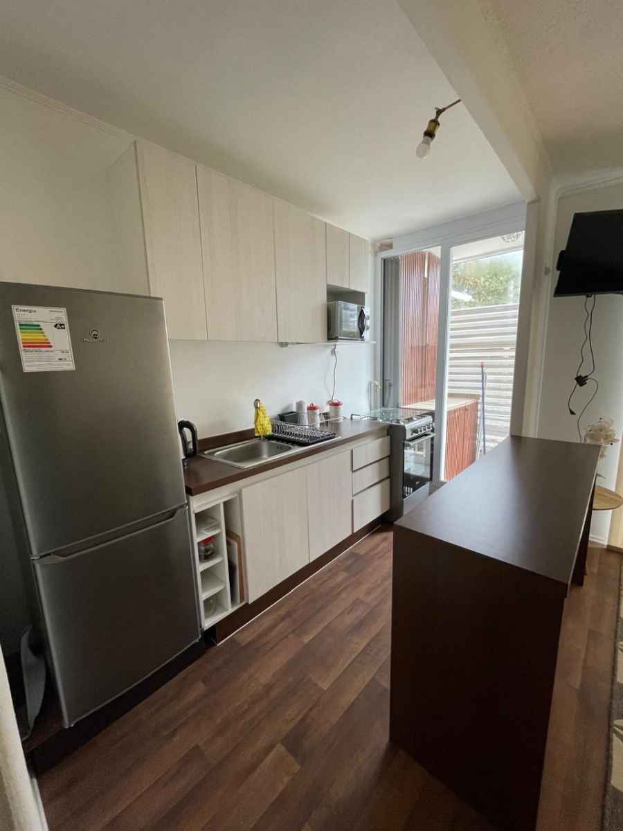 •Cocina americana, Refrigerador, cocina , calefont , microonda , implementos de cocina