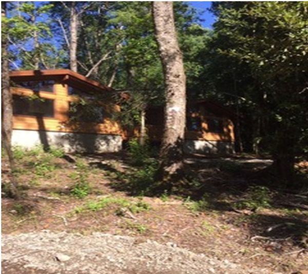 Hermosas cabañas totalmente equipadas conectadas por un deck, con un dormitorio y un baño cada una. Rodeadas de bosque nativo y topografía con suave lomaje.