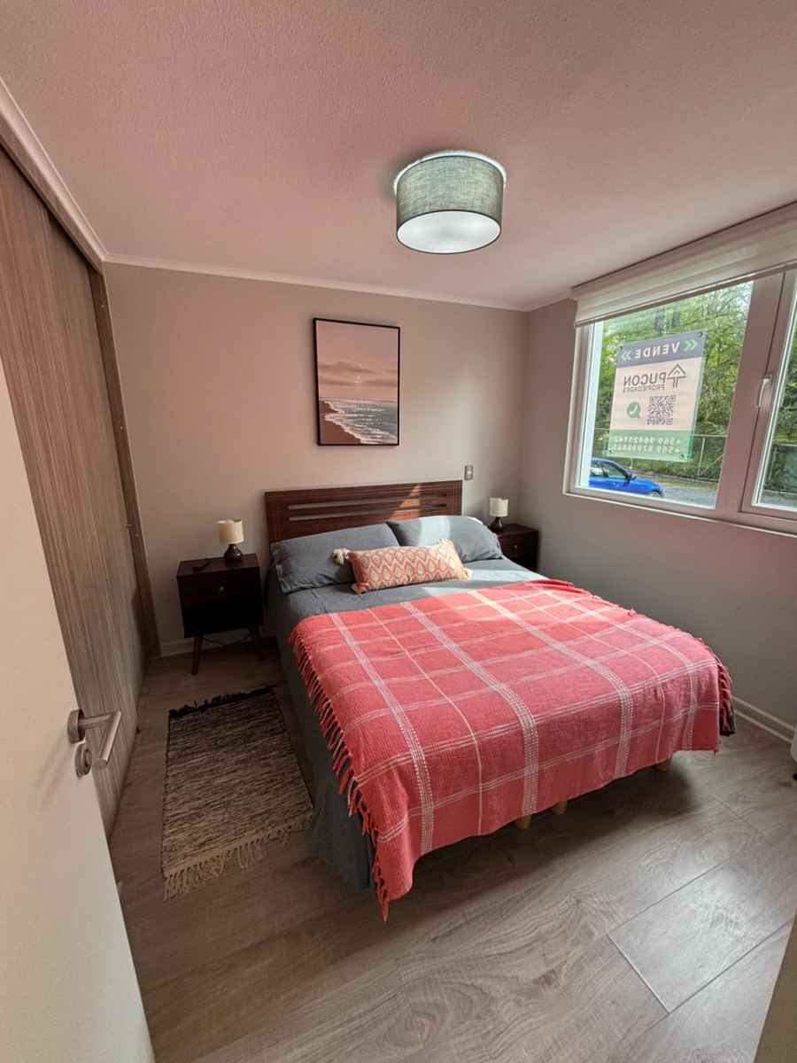 En Venta Departamento ubicado en condomino Robles del Volcán, Camino al Volcán 865, a solo 4 minutos de distancia al centro de Pucón y del lago Villarrica. Disfruta de los deportes acuáticos, trekking y de la mejor calidad de los restaurantes. Cercano al volcán Villarrica, termas, casino y del centro de ski.